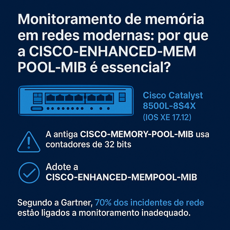 Este post explora como utilizar a MIB CISCO-ENHANCED-MEMPOOL-MIB para monitoramento de RAM, destacando boas práticas e soluções para desafios técnicos.